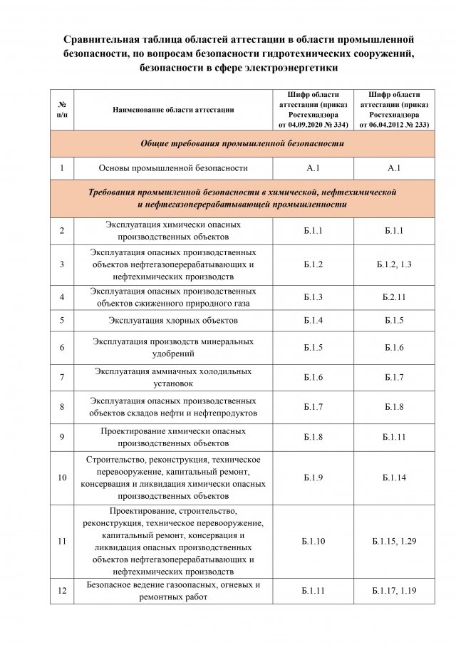 В следующей таблице представлено соответствие групп ОПО НАКС соответствующим областям аттестации по промышленной безопасности. Таблицу можно распечатать или скачать на электронный носитель.