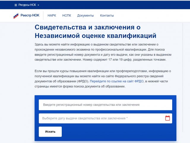 | Реестр НОК | Универсальная платформа для верификации квалификации и документов специалистов всех отраслей экономики |