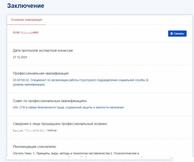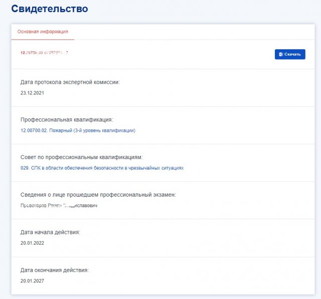 Чтобы сохранить копию свидетельства или заключения на устройство, нажмите кнопку «Скачать», расположенную в правом верхнем углу карточки документа.