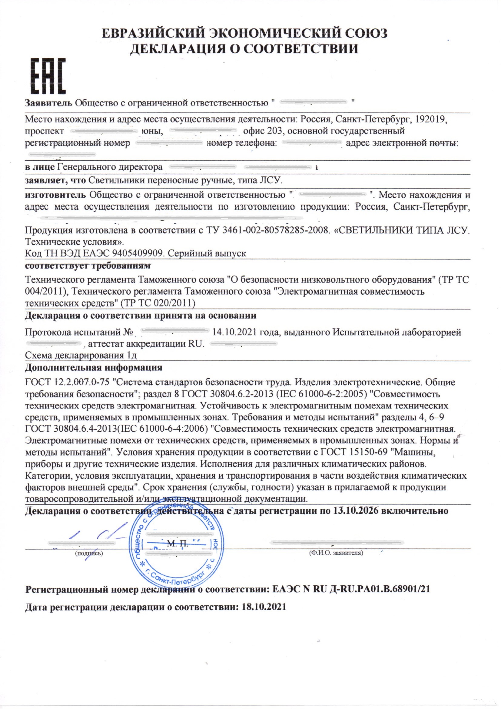 Срок действия сертификата и декларации на серийно выпускаемую продукцию ТР ТС 004/2011 составляет - не более 5 лет, при этом на единичное изделие срок не предусмотрен.