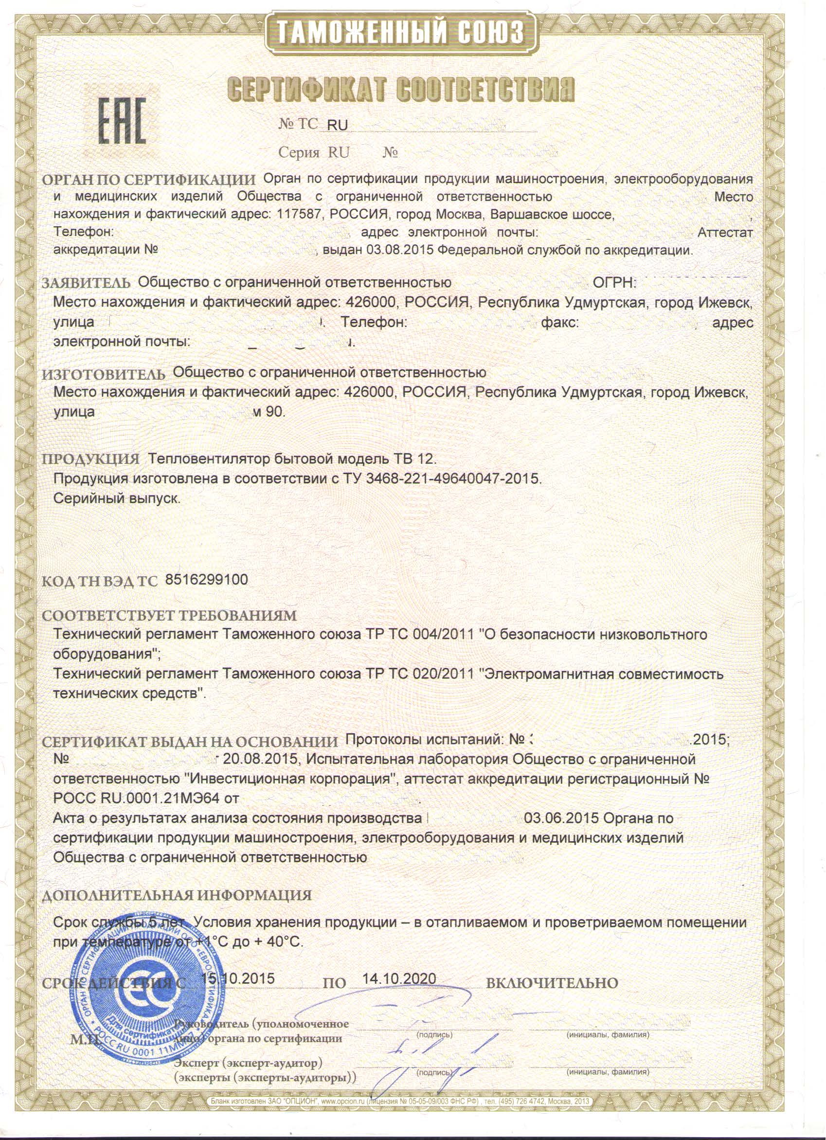 Стоимость и сроки оформления сертификата ТР ТС 004/2011