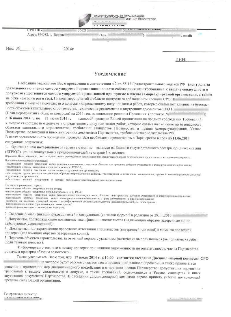 Перечень документов для плановой и внеплановой проверки члена СРО