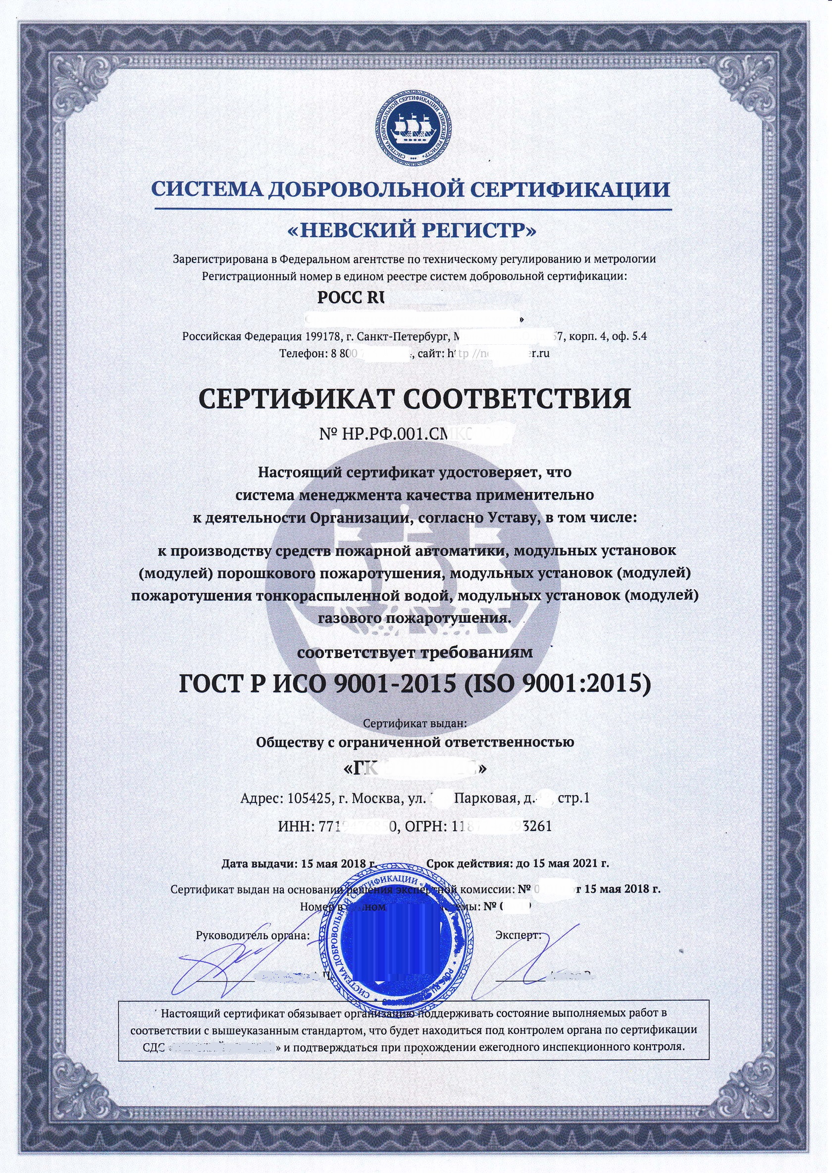 Сертификат ИСО;