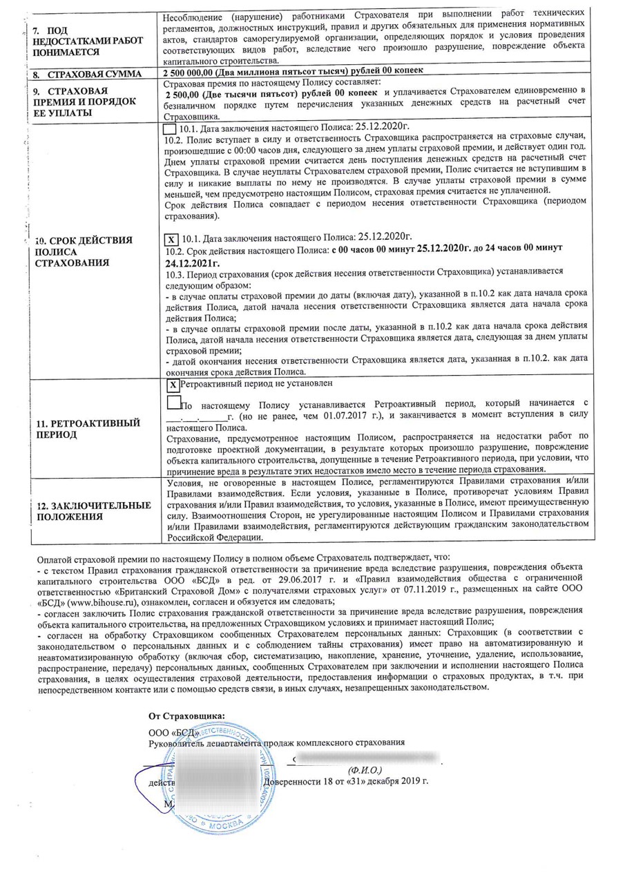 Страховой полис;