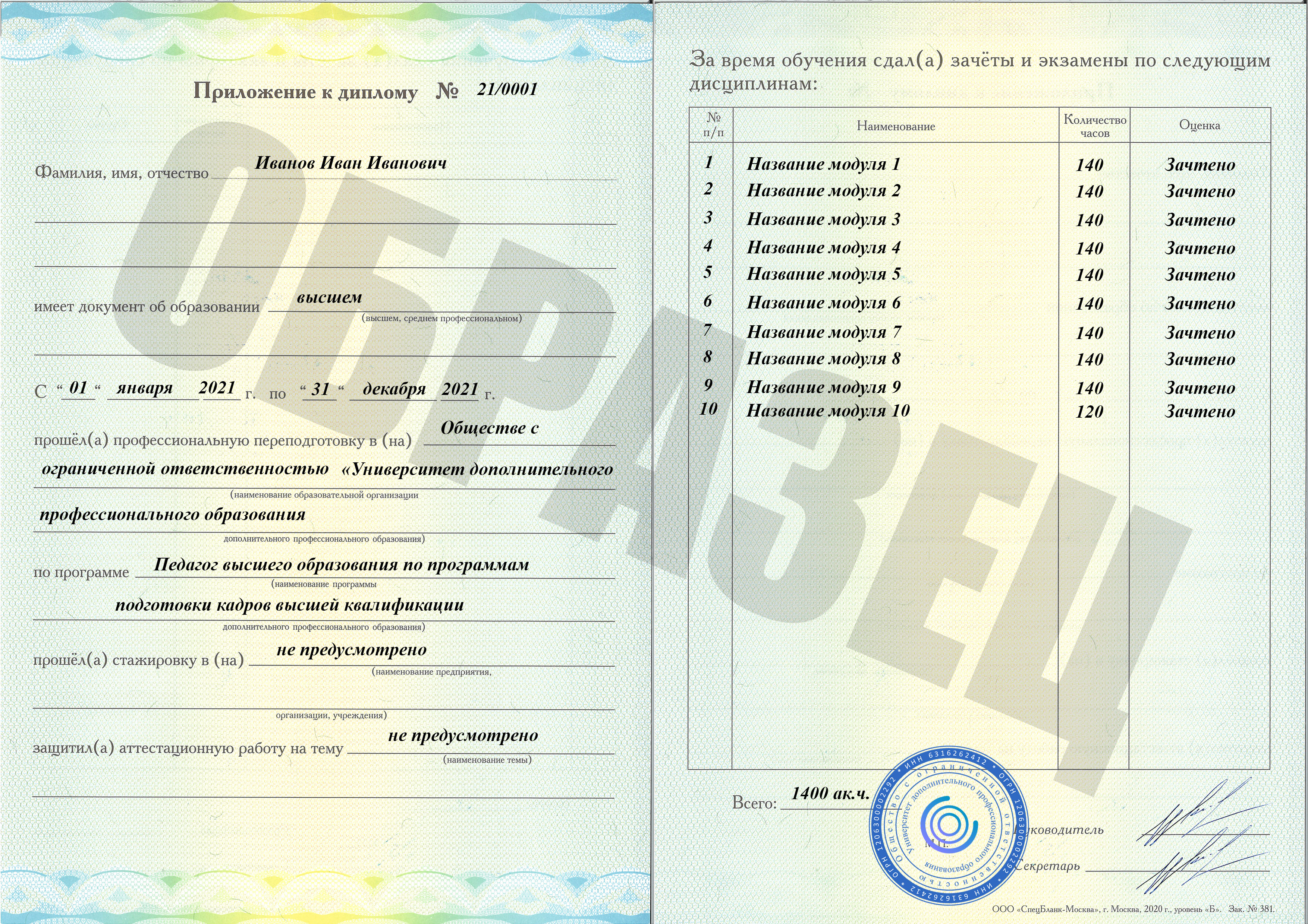 | Получаемый документ | Диплом о профессиональной переподготовке |